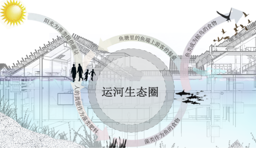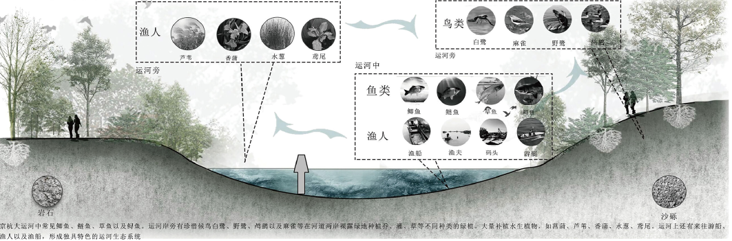 我们以古镇沿线大运河水域为设计对象,尝试引入“运河生态圈”的概念来推动运河生态环境改善,构建人与自然和谐共生的运河家园。