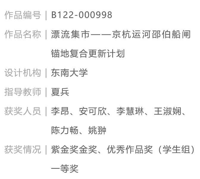 金奖作品荐读 | 漂流集市——京杭运河邵伯船闸锚地复合更新计划【东南大学】第九届紫金奖建筑赛