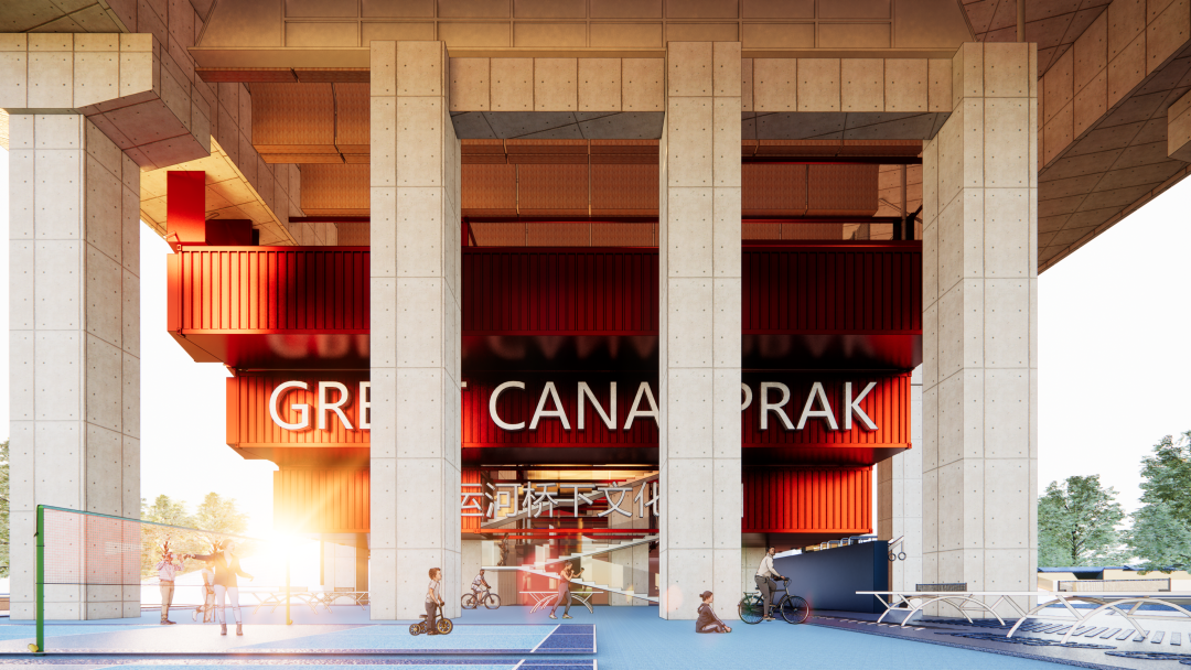 作品关注的是城市灰空间——桥底剩余空间。设计方案采用轻质、低碳、互动、在地的技术设计手法,通过植入“展、演、玩、行、读、憩”等多元功能,对大桥底部剩余空间进行了大胆的设计尝试。通过探索桥底剩余空间活化再利用的路径,不仅拓展了运河文化传承利用的方式,也为当前城市更新实践提供了可借鉴的方向。