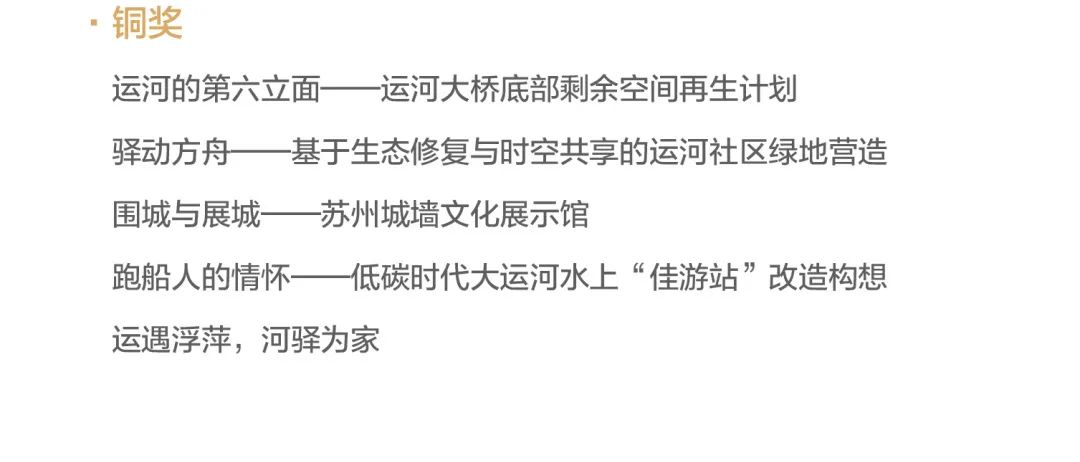 参赛作品聚焦具有真实的历史记忆和历史文化的场地,创作了一批题材多元、亮点纷呈、富有创意的设计方案。近期微信公众号将逐步推出第九届紫金奖建筑赛获奖作品解读,期待能为大运河文化保护传承与创新,大运河活力空间的当代塑造提供思考启迪。