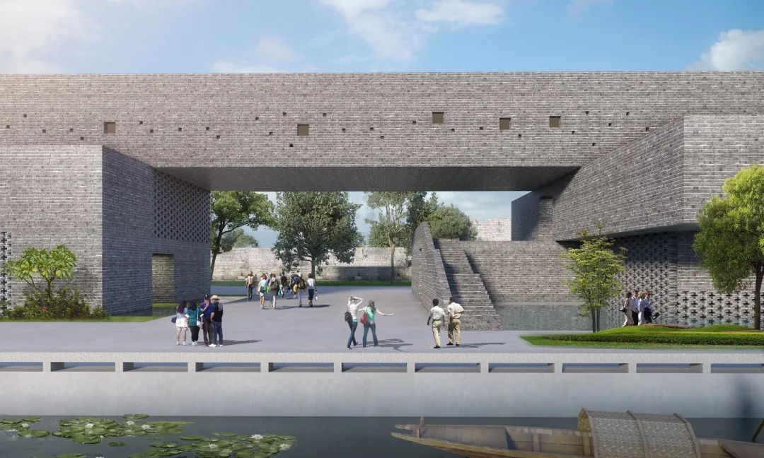 京杭大运河在不同的地理区段呈现出不同的面貌。在江南水乡的核心城市苏州,古老的运河与古城城墻、护城河共同形成了整体性的节点空间。苏州城墙文化展示馆设计准确抓住了这样的文化背景和空间特质,将基地选在城墙与护城河之间,通过简洁现代的砖体建筑与两者同源对话,讲述了历史与文化的故事,使人们对于河道与苏州古城之间的不可分割性有了更加直接深刻的体验。