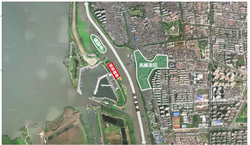 设计场地为高邮市船舶修造厂原址,该厂位于京杭大运河西岸,西侧紧邻高邮湖,与镇国寺风景区、高邮老街隔河相望,文化底蕴浓厚,景观资源丰富,交通条件便利。