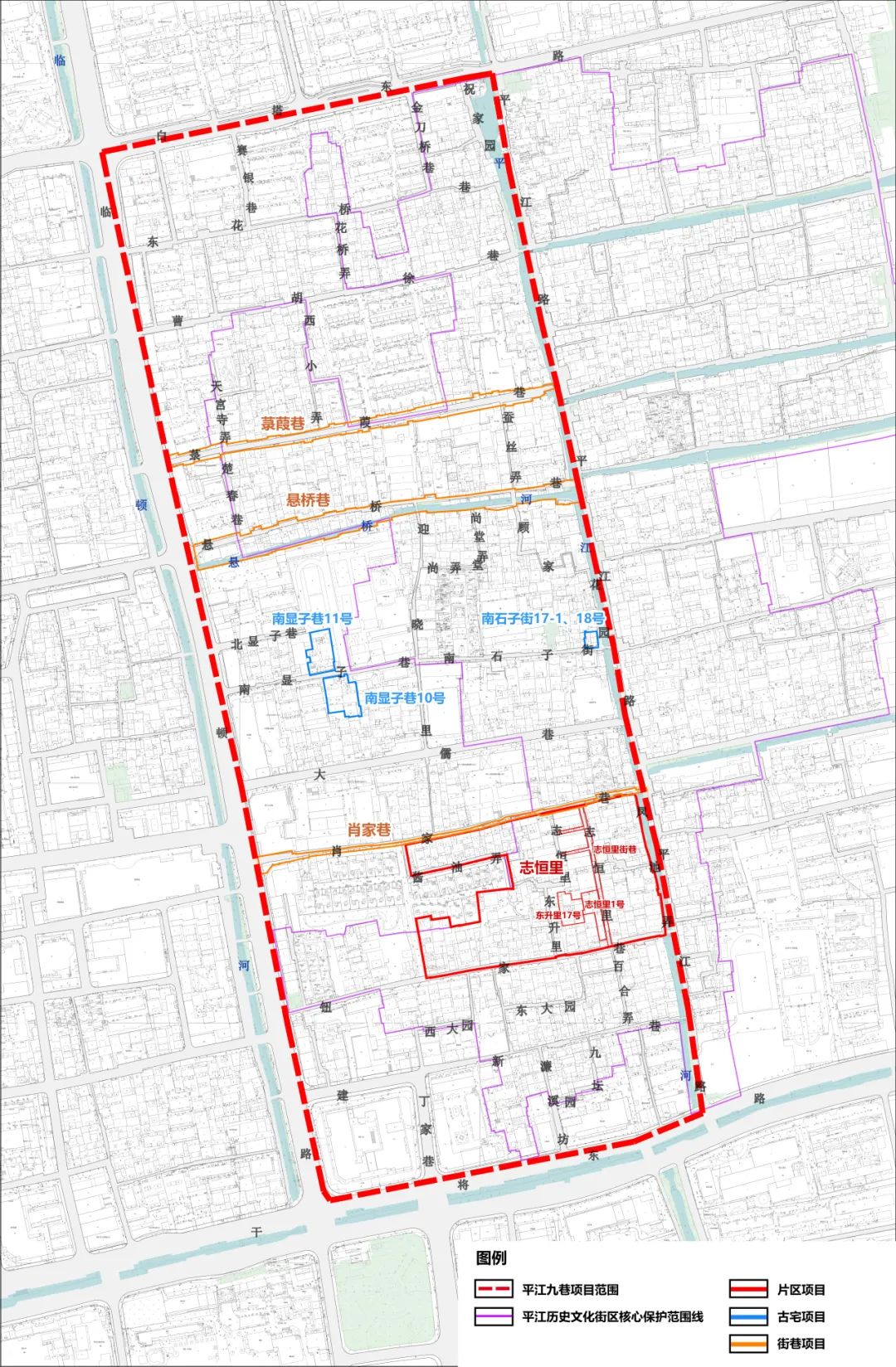 “平江九巷”项目位于苏州市平江路历史文化街区内,区域范畴北至白塔东路、南至干将东路、西至临顿路、东至平江路,占地总面积约48.9公顷。