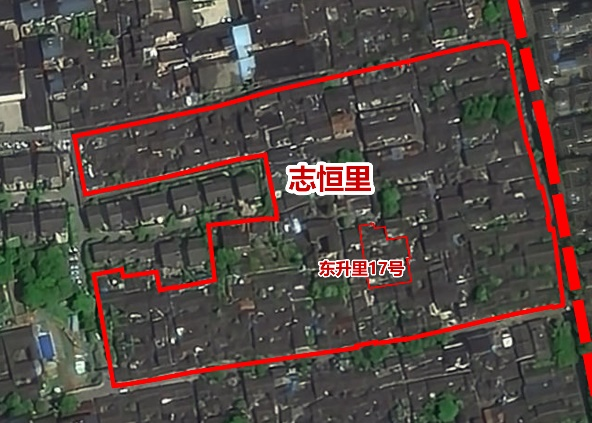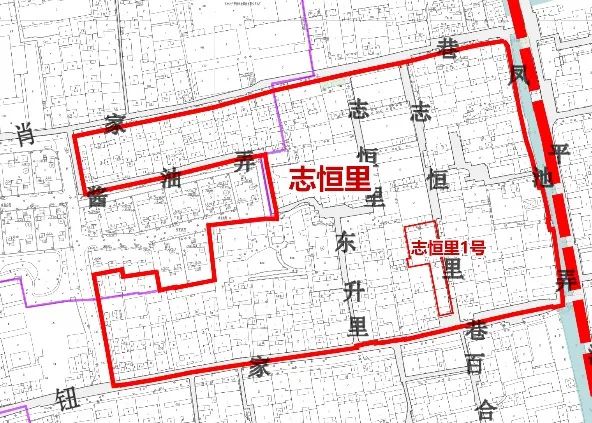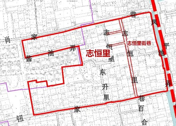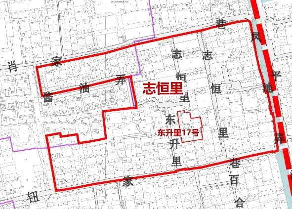 东升里人才社区位于平江九巷中南部,北至肖家巷,南至钮家巷,现状以志恒里南北向街巷为空间骨架。该区域设计任务为:围绕打造高层次人才社区的发展目标,重点打造志恒里街巷、志恒里1号和东升里17号三个设计单元。