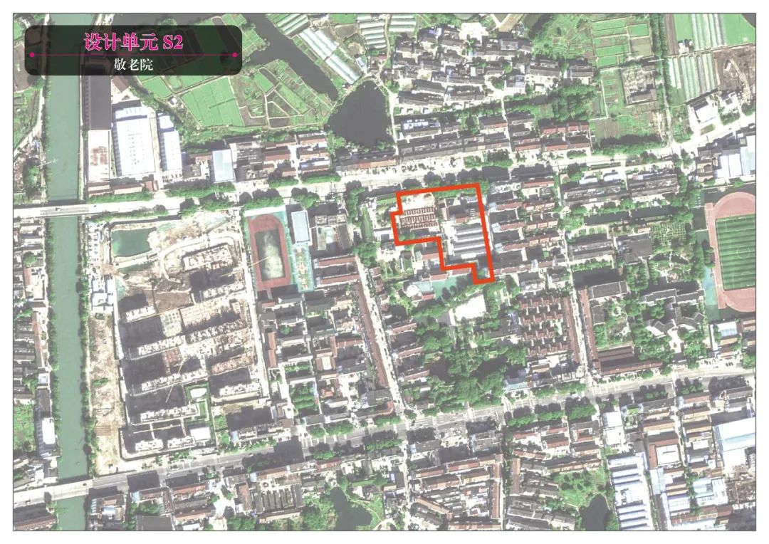 该单元位于镇区晴山路东侧,环镇北路南侧,面积约1.27公顷。现状为马镇敬老院,实际使用功能与效率偏低,缺乏公共设施配套与景观塑造。