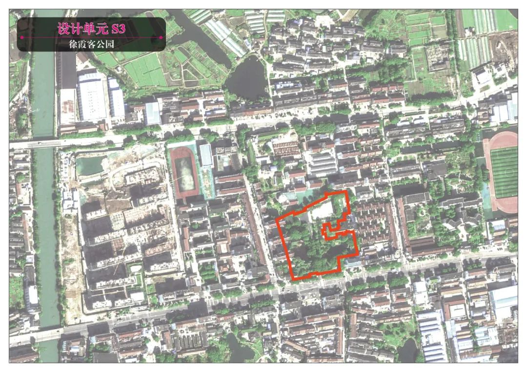 该单元北侧为镇区东西向主要街道(东街),北侧紧邻徐霞客公园,面积约1.02公顷,其中存量建筑面积8000平方米。现状为镇区居民居住空间,内部以硬质场地为主。未来居民主要车行出入口规划在东街和文化路,西侧霞客路规划为步行空间。