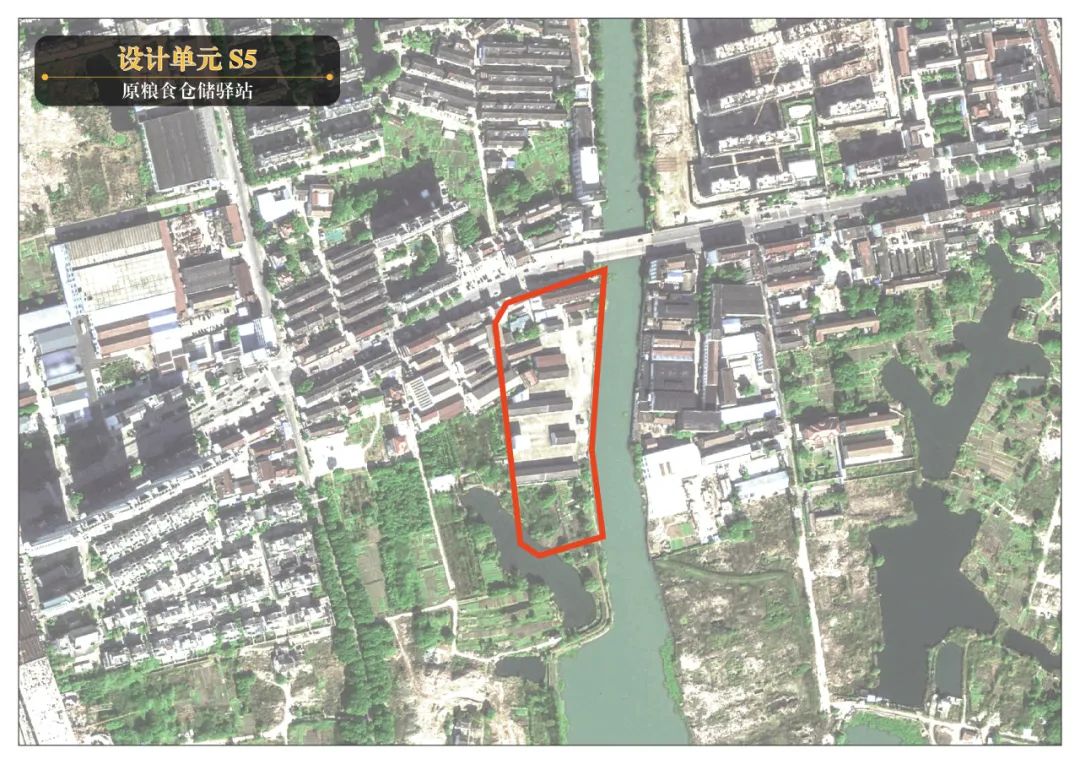 该单元位于镇区白屈港西侧,规划绿博东路北侧,东街西街南侧,面积约2.55公顷。现状存量建筑为原粮食仓储驿站的遗留仓库,利用率较低,拟规划为镇区运动、休闲活动中心;东侧白屈港为区域性7级航道,常水位1.624米,设计洪水位2.904-3.194米。
