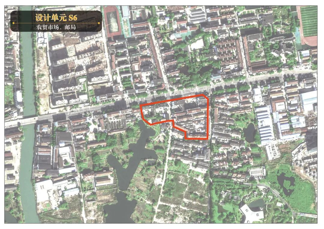 该单元位于马镇社区中心,东街南侧,晴山路两侧,面积约2.32公顷。现状为马镇农贸市场、邮局,承载镇区重要的日常生活需求和公共服务,现状公共空间环境品质较低,农贸市场流线组织和内部摊位布置较混乱。