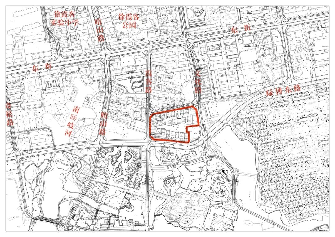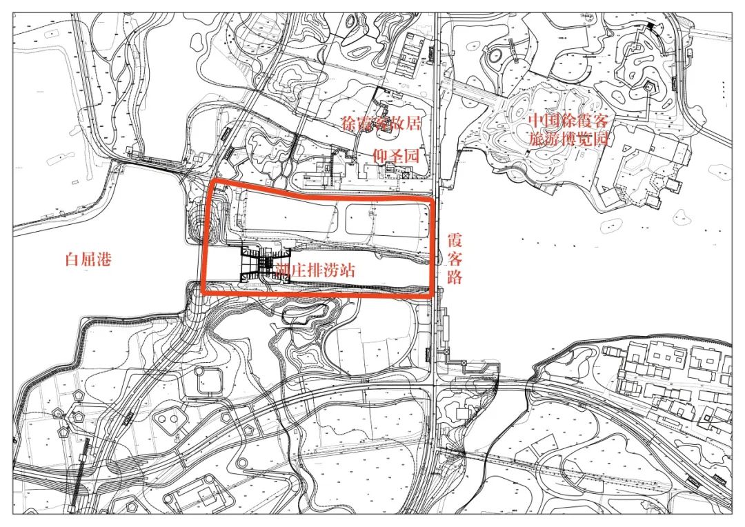 竞赛鼓励充分利用基地周边水系资源,考虑与北侧霞客故居、仰圣园的协调关系,植入地域文化等要素,形成富有江南地域特色的水乡场景空间。