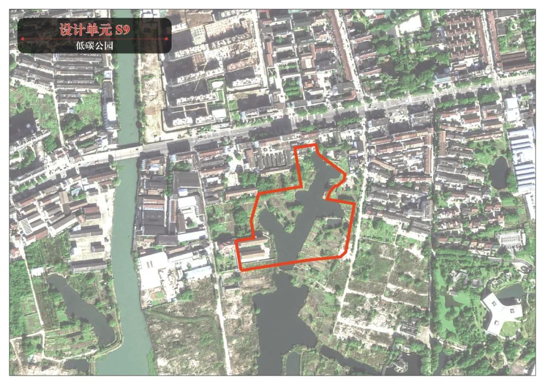 该单元位于镇区规划绿博东路北侧,晴山路西侧,东南侧紧邻博览园北入口,东北侧紧邻规划城市驿站,西侧紧邻生活超市、宾馆等公共服务功能片区,东、西侧远景规划为商住用地,总面积约3.64公顷,其中水域面积1.48公顷。基地现状为荒置空闲绿地,拟规划为社区低碳示范公园。