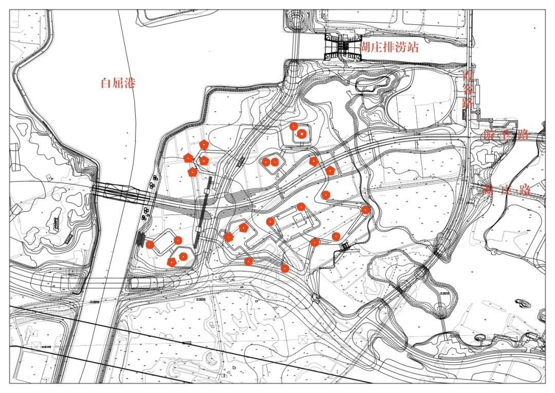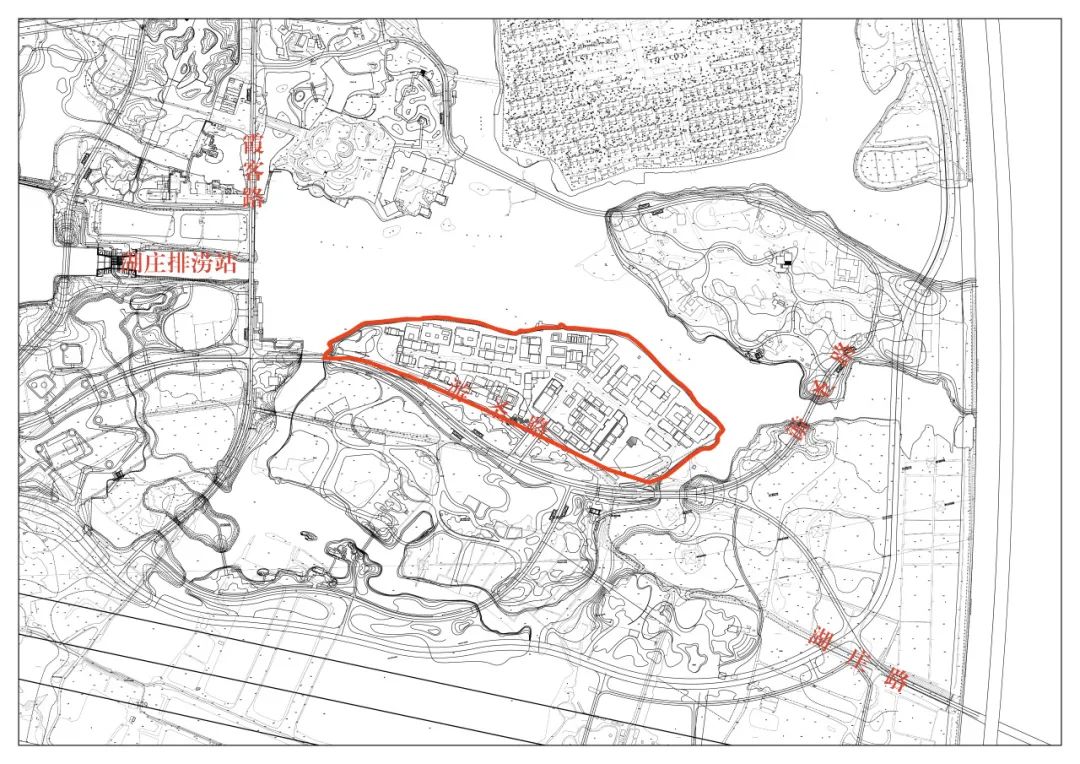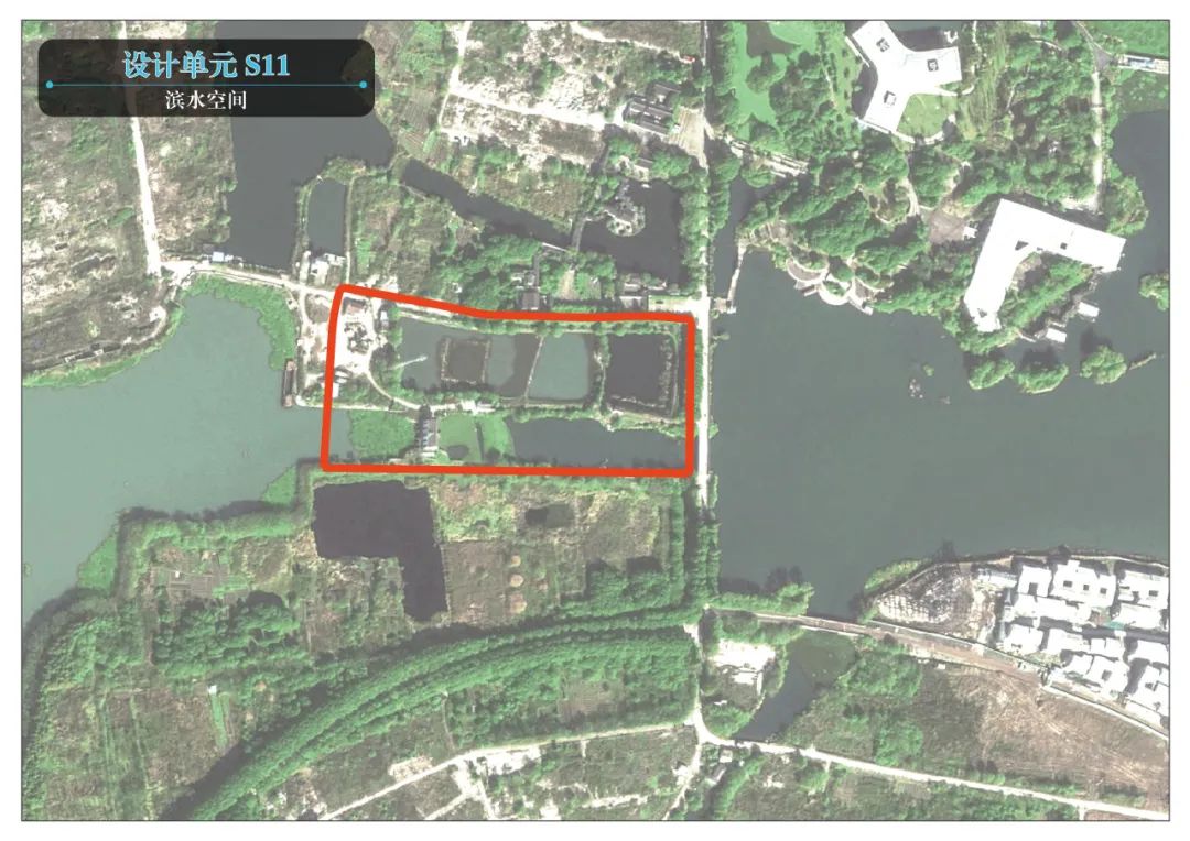 该单元位于园博会核心展示区内,北侧紧邻徐霞客故居、仰圣园,面积约3.25公顷。现状大部分为坑塘水面,含一处排涝站,绿化空间较少;西侧白屈港为区域性7级航道,常水位1.624米,设计洪水位2.904-3.194米,东侧为园区内部水体,常水位1.374米,最高控制水位1.674米,其中排涝站年久失修,将进行拆后重建。