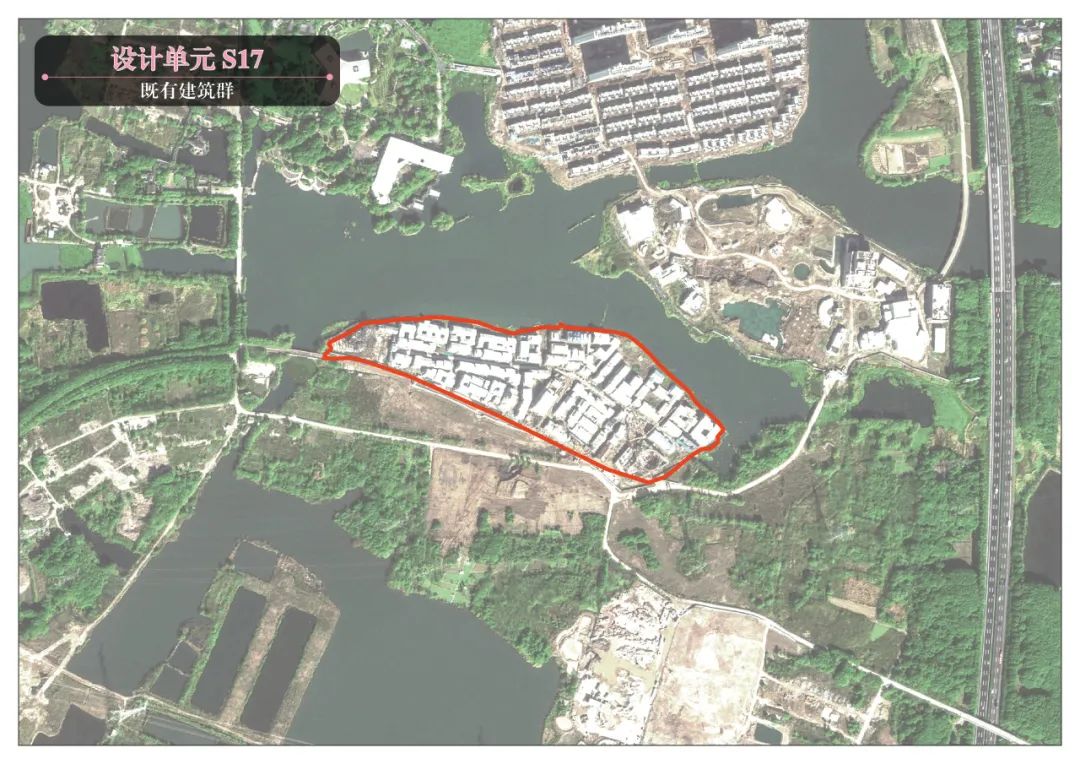该单元位于园博会核心展示区中部,北临水体,南邻规划东西向主园路,用地面积约7.42公顷。现状主要为未完工小镇建筑群,总建筑面积约50329平方米。