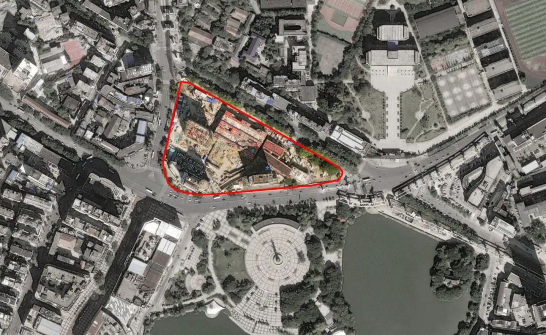 该设计单元为某轨道交通综合枢纽站点,周边有城市公园、酒店和高架桥等。参赛者可结合周边既有景观资源与空间特征进行创意设计。
