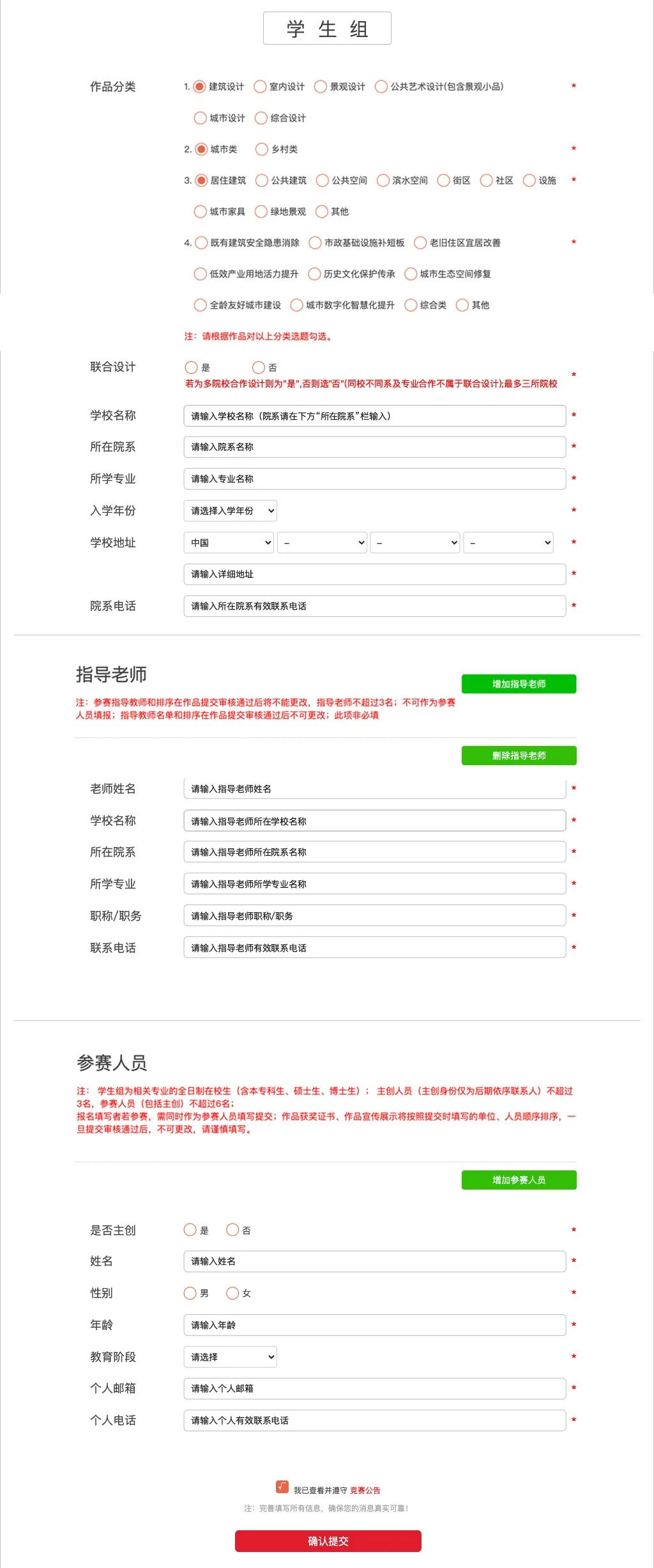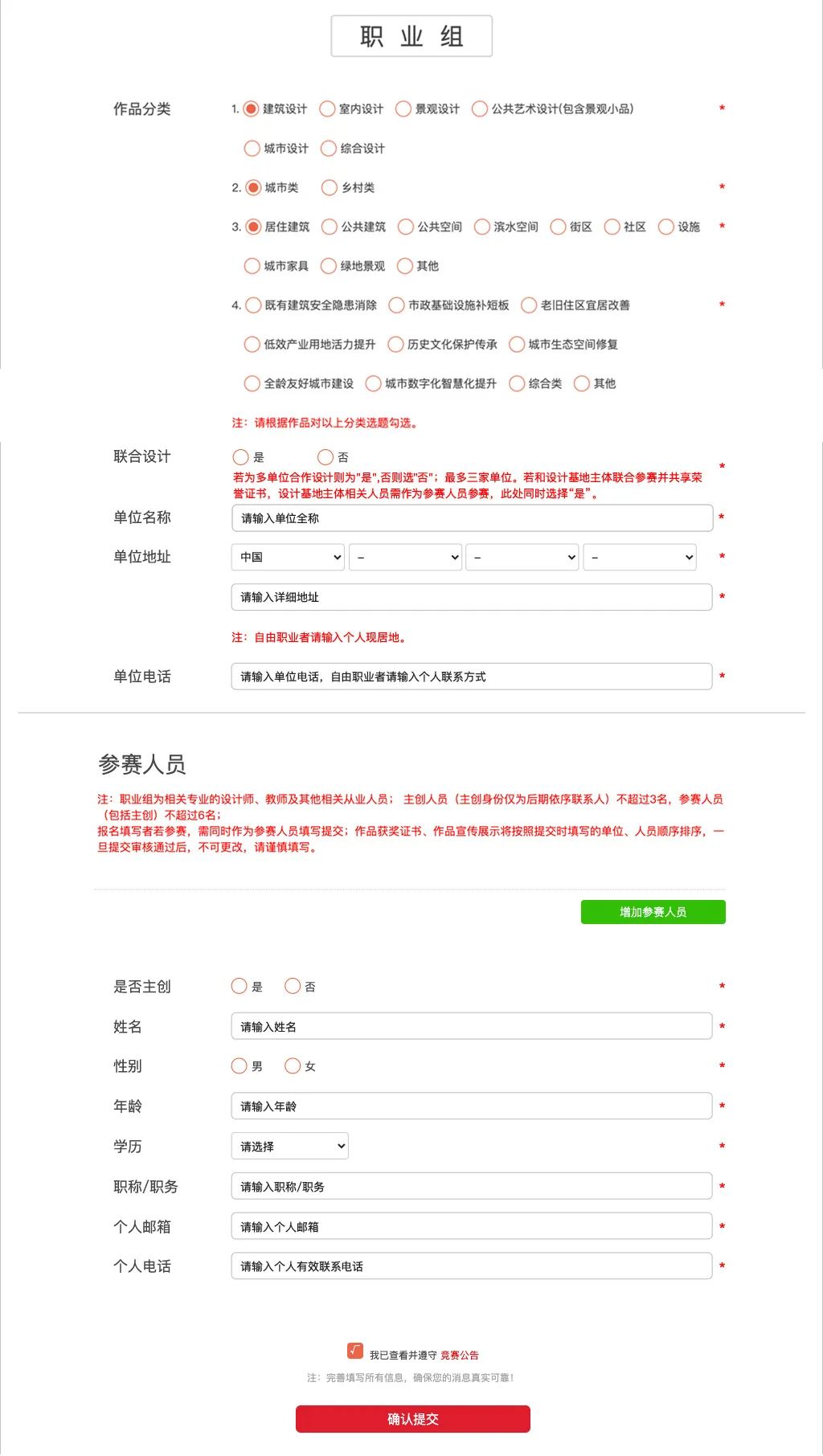 报名填写者(注册用户)若参赛,须在作品报名时一并填写个人有关信息;