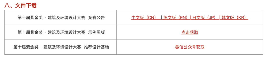 进入第十届“紫金奖•建筑及环境设计大赛”报名页面下载示例图版。