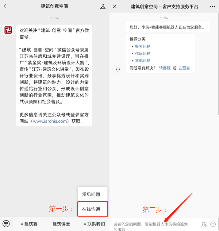 更多问题可通过网站(www.iarchis.com)、“建筑创意空间”公众号(联系我们-常见问题/在线沟通)在线咨询。自动答疑机器人的回复,可解决绝大部分疑惑。