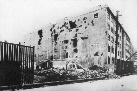 ▲四行仓库西墙1937年保卫战后(左图)和修复后(右图)实景