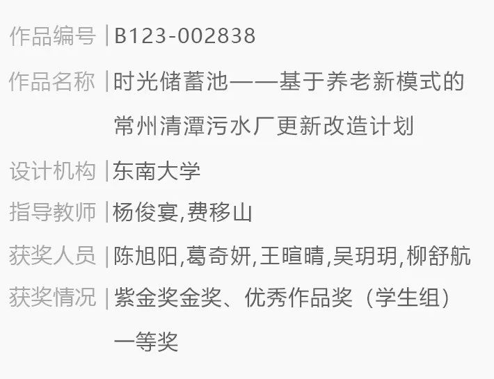 金奖作品荐读 | 时光储蓄池——基于养老新模式的常州清潭污水厂更新改造计划【东南大学】第十届紫金奖建筑赛