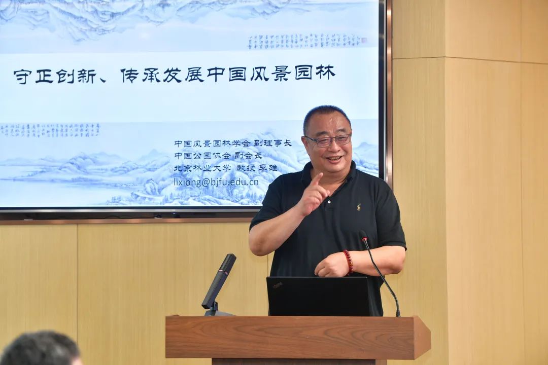北京林业大学副校长、中国风景园林学会副理事长李雄作《守正创新,传承发展中国风景园林》专题报告;