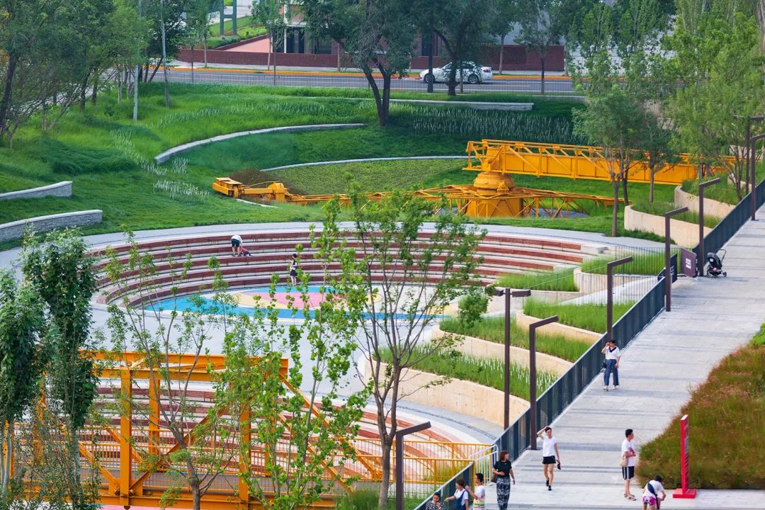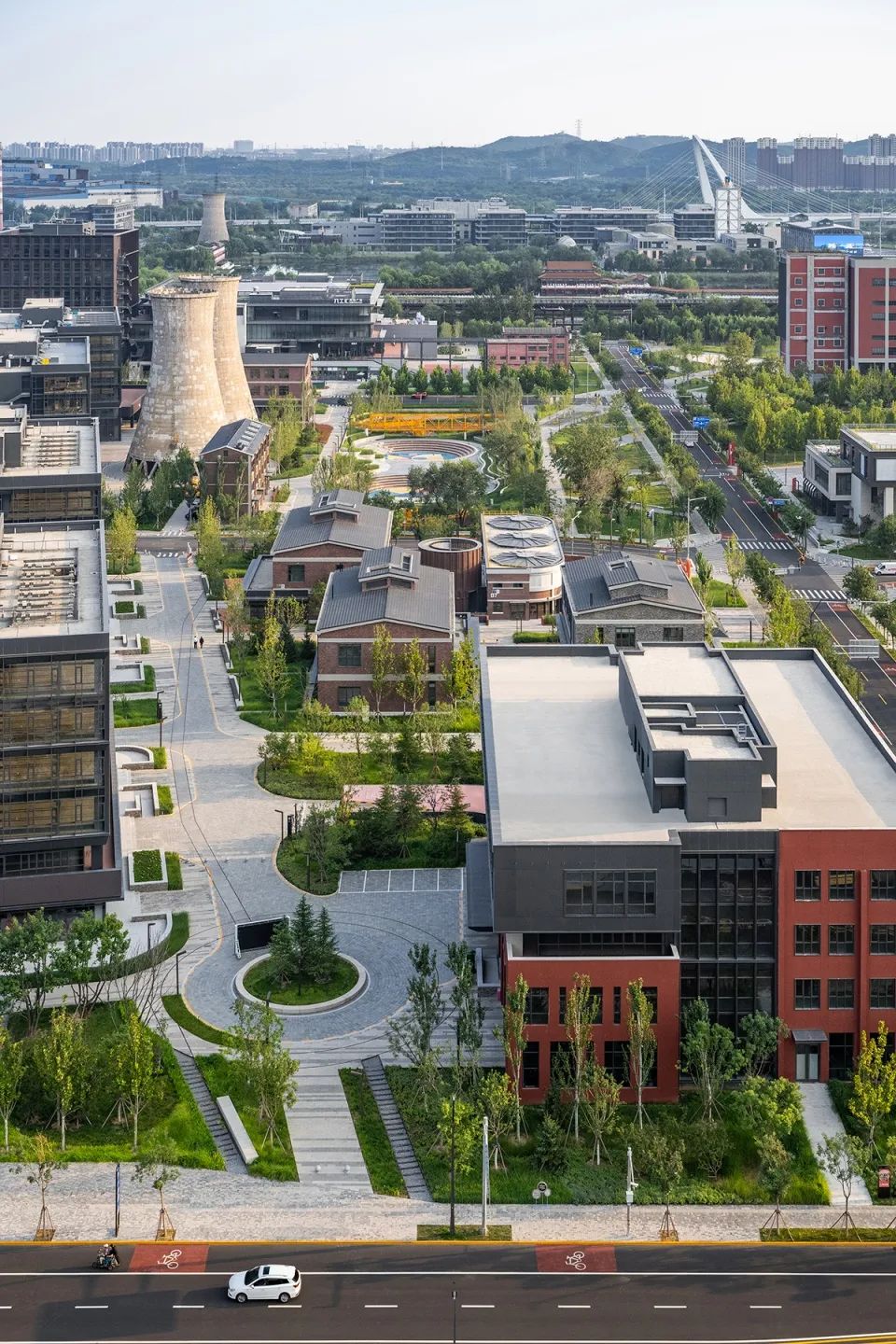 用车轮和铁轨丈量的工业厂区转变为用脚步丈量的城市街区:基地中包含了五一剧场、加速澄清池、二泵站、风机房、制粉车间转运站、沉淀池、冷却塔、水泵房等大量的工业遗存。这些遗存的保护利用采用了“一遗一策”的总体方案,以差异化的“量体裁衣”思路,力争每座遗存都能回归到邻里尺度的街区当中,真正参与到城市空间新陈代谢的大循环,遗存成为场所本身,成为街区活力的组成部分,渐进式地实现城市空间的价值重塑。