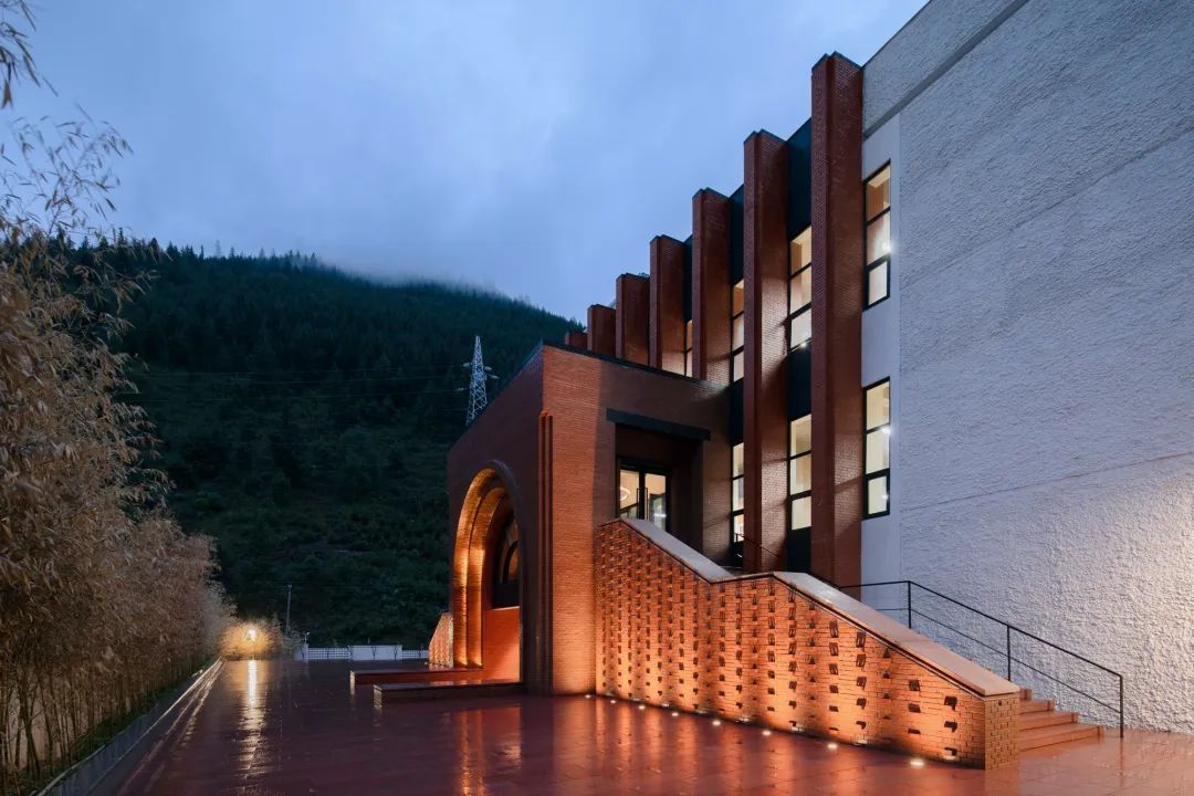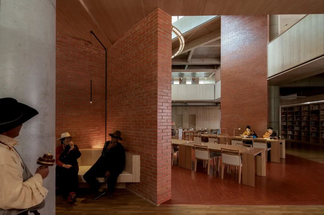 内部装修采用了最简单的建构方式,尽可能减少在现场的木作工作。中央的大厅既是中庭更是光厅,随着时间的变化呈现着丰富的室内体验。藏区建筑的封闭性和阳光形成强烈的对比,每一道阳光都让空间呈现出了一种祥和的氛围。