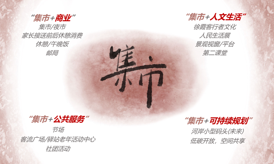 该农贸市场规模较大,周边生活配套设施类型较多,是该镇一个人流高度汇集的场所。从现状调研看,该市场目前功能分区较为混杂,是一个典型的传统老市场。它既是百姓的重要日常生活交往空间,也是城市记忆的空间载体,市场的烟火气息和园艺风貌如何碰撞交融?一个绿色可持续、商市一体的城市花境公园概念在我们设想中形成。