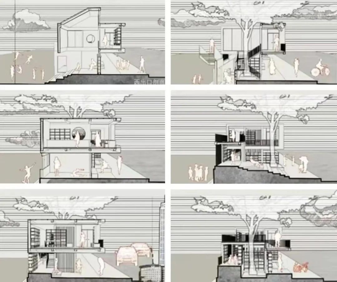 此外,驿站部分立面采用了可旋转的书柜模块设计,为人们提供阅读、交流和互动的共享空间。
