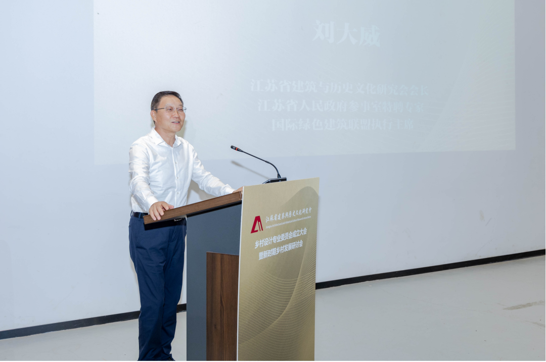 江苏省建筑与历史文化研究会会长、省人民政府参事室特聘专家刘大威在致辞中指出,期待新成立的专委会顺应时代发展趋势,发挥自身优势,积极汇聚行业智慧,汇集社会资源和联动兄弟社团,成为一个交流合作和创新的平台,交流实践和工作经验,分享优秀案例,以高水平的规划设计助力新时代乡村发展建设,为让“今天的乡村设计建设成为明天致力保护的文化景观”而共同努力。