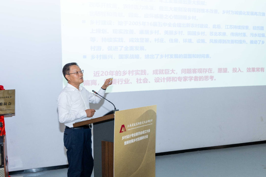 江苏省建筑与历史文化研究会会长、省人民政府参事室特聘专家刘大威作题为《乡村建设的实践与思考》的报告。