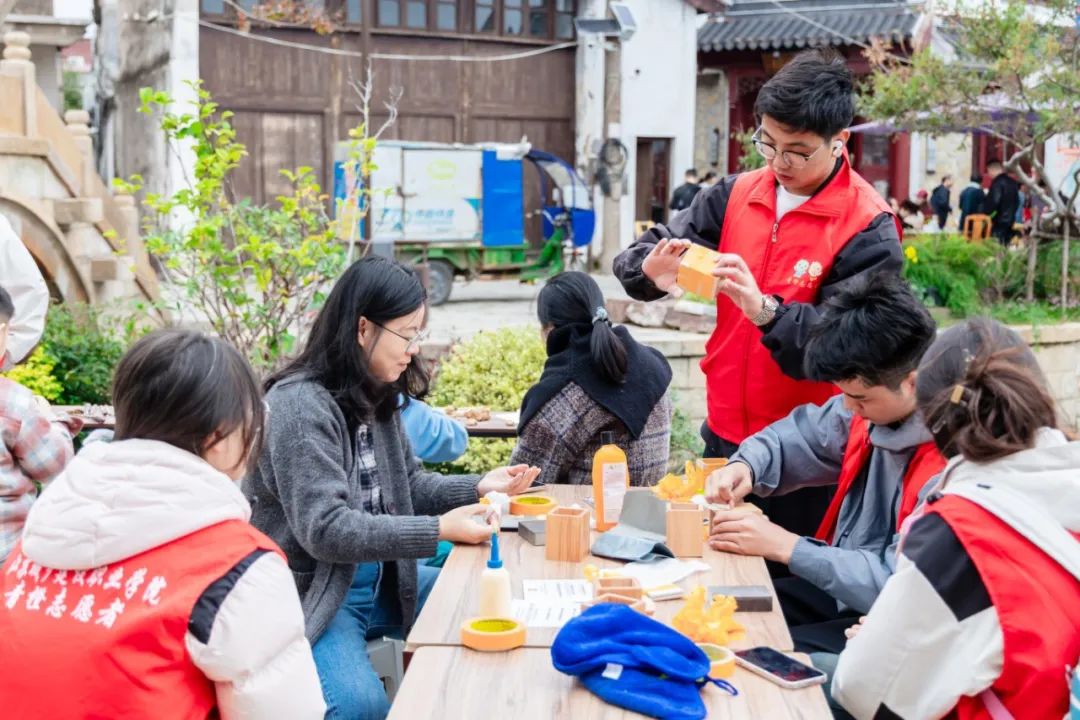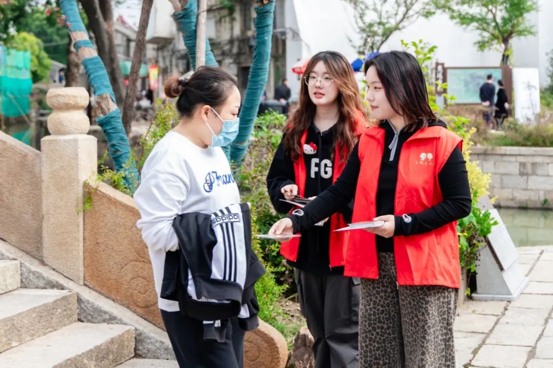 志愿者走进街头巷尾,向游客讲解常州历史与焦溪古镇传统建筑技艺。现场还设置了学生们DIY的文创产品展示和互动问答环节,在互动与交流中共同弘扬中华优秀传统文化,感受中华文明的魅力!
