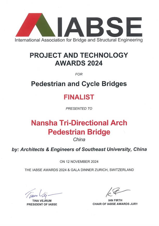 广州南沙聚星桥(Nansha Tri-directional Arch Pedestrian Bridge)入围2024年度国际桥梁与结构工程协会IABSE杰出人行桥梁奖。
