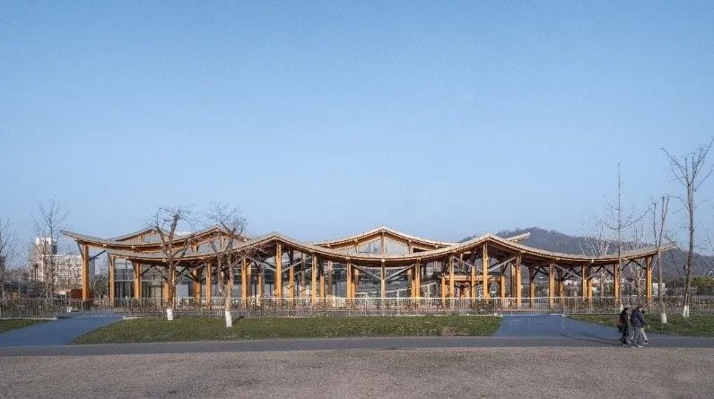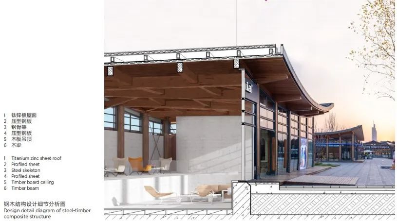 设计采用小体量建筑以呼应山水环境,下沉广场与滨水公园紧密相连;建筑形式汲取自然灵感,采用钢木玻璃相结合的材料,使得室内外空间渗透与融合,并鼓励室外公共活动,实现公共空间与景观环境的一体化。