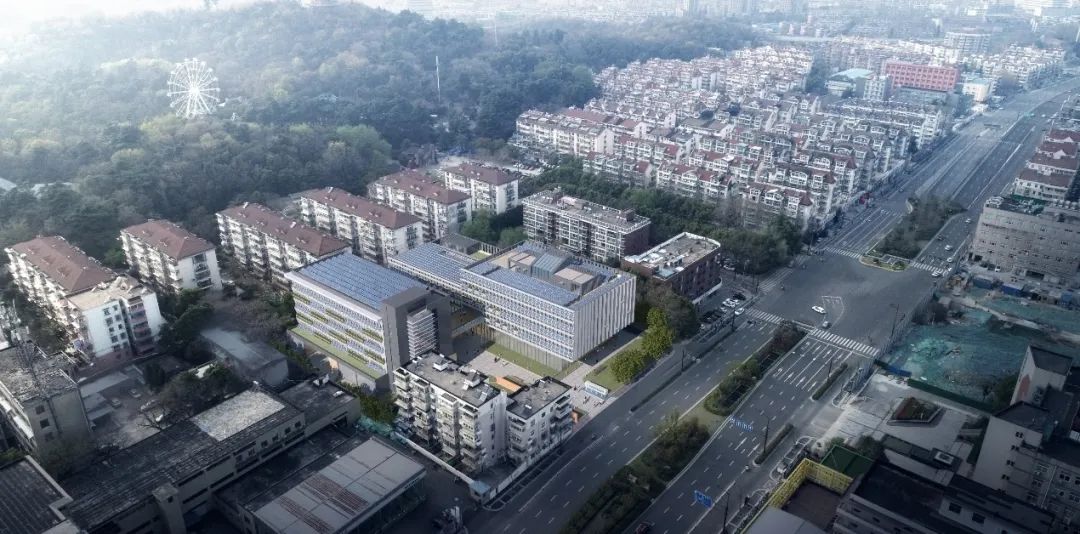 该项目位于玄武区红山路,毗邻红山动物园,总用地面积6782.89平方米,设计基于整体系统研究,将全寿命、系统化低碳建筑理念贯穿始终。设计系统探索了老城地块更新中融合拆除、改造、新建于一体的低碳建筑设计理念与策略:保留并改造原办公实验楼,拆除原有一层的结构试验室,新建总建筑面积1.35万平方米,形成了地上以办公、展示、交流为主,地下作为食堂、设备用房及智能停车库的综合体。