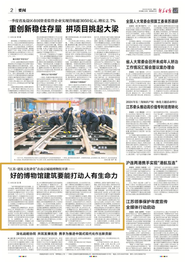 《新华日报》分别以“好的博物馆建筑要能打动人有生命力”“城市公共空间营造要向史而新”为题对讲堂活动进行了报道。