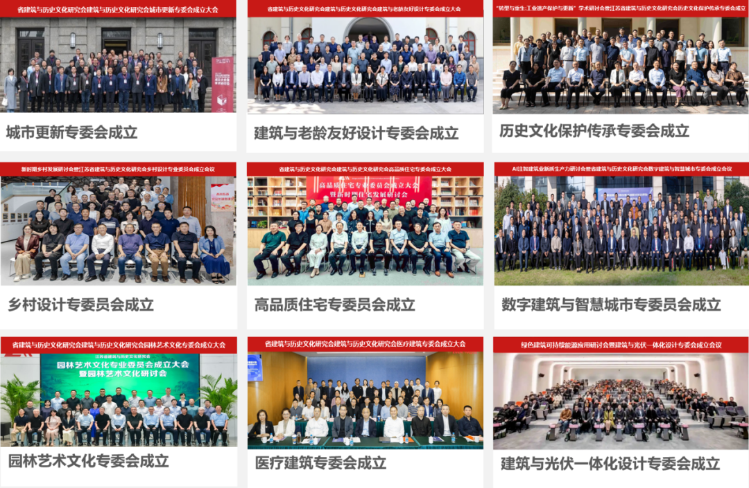 省建筑与历史文化研究会联结行业企业、科研院校、管理部门等资源,汇聚各方智慧和力量,先后成立了城市更新、建筑与老龄友好设计、园林艺术文化、高品质住宅、历史文化保护传承、乡村设计、医疗建筑、数字建筑与智慧城市、建筑与光伏一体化设计9个专业委员会,致力于构建多领域、多学科、多维度的交流合作平台,一同分享行业前沿趋势、交流建筑创新技术、碰撞可持续发展理念。