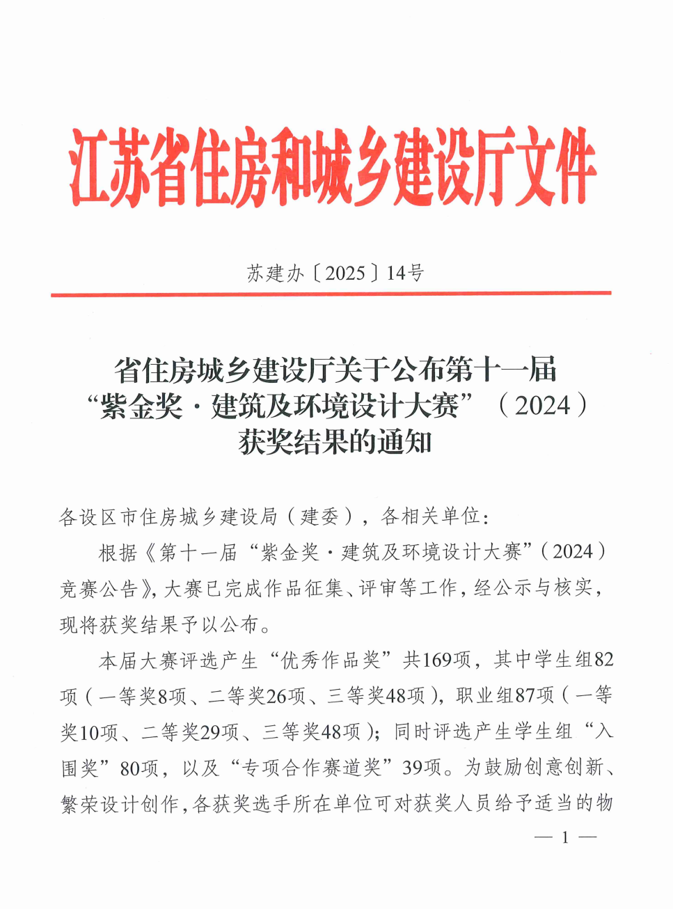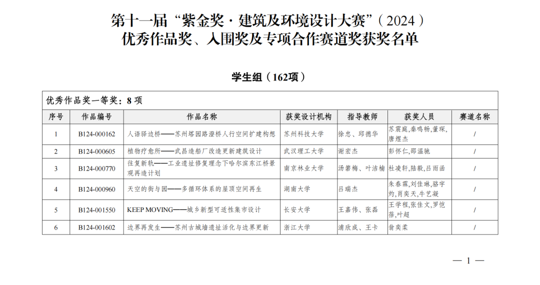 根据《第十一届“紫金奖·建筑及环境设计大赛”(2024)竞赛公告》,大赛已完成作品征集、评审等工作,经公示与核实,现将获奖结果予以公布。