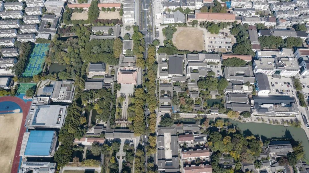 △ 苏州中学东西校区人民路段航拍