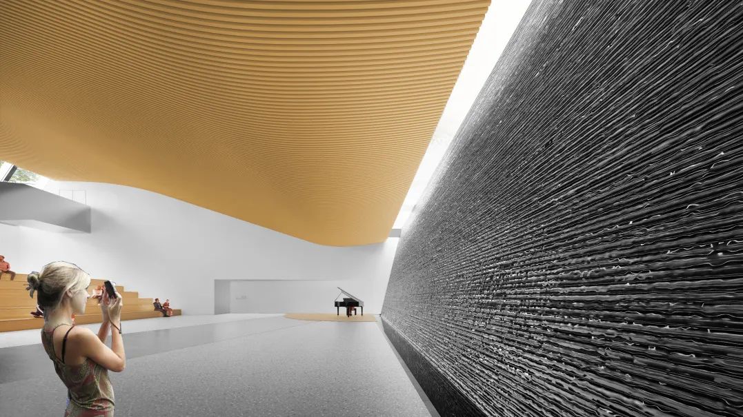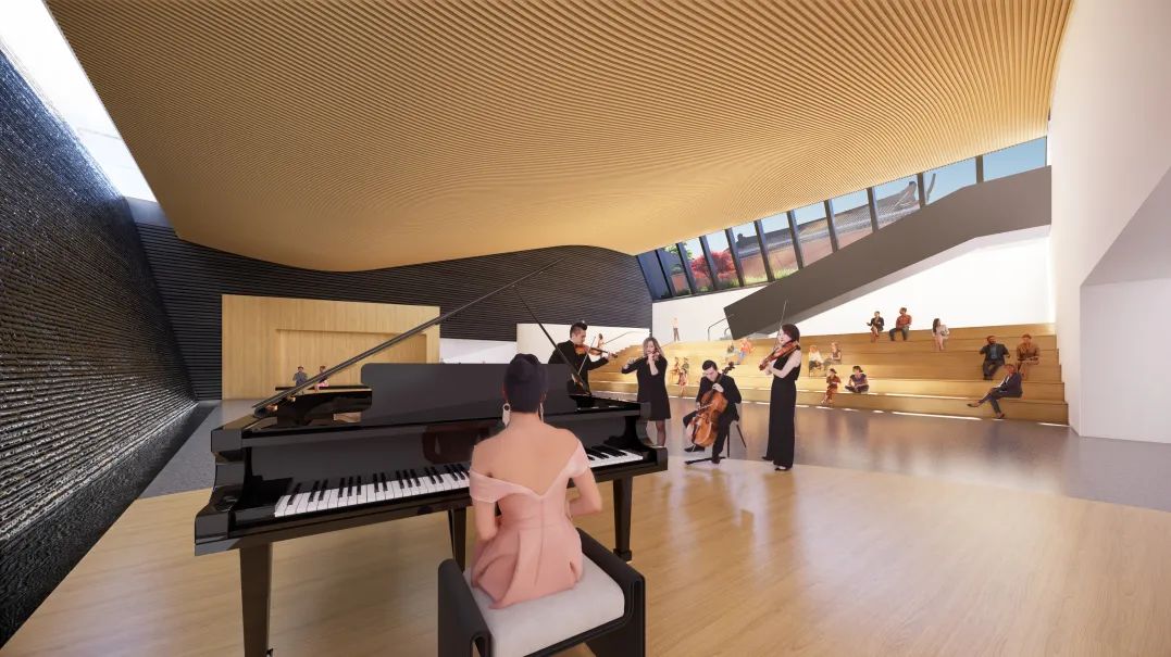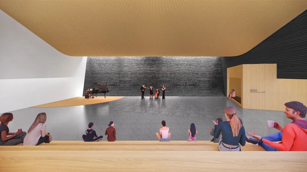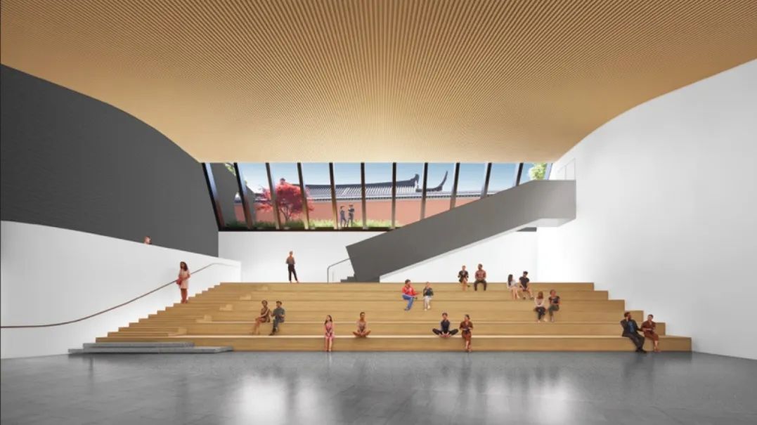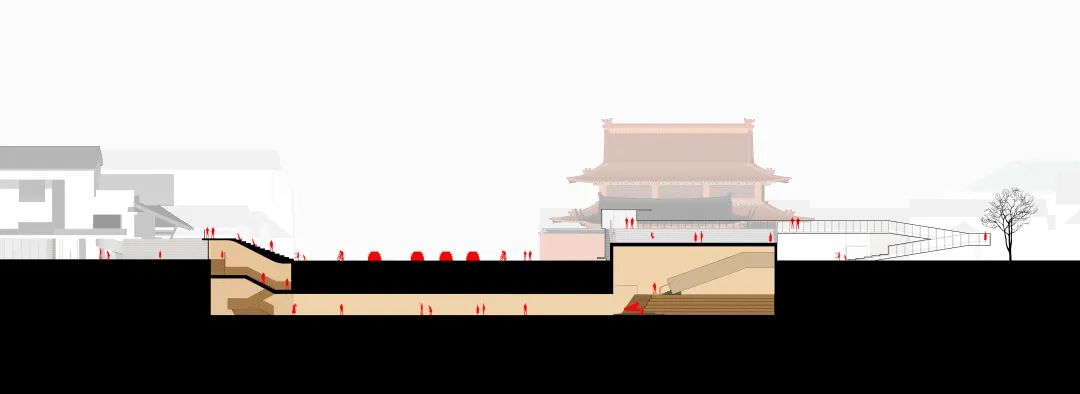 为满足人流通行需求,设计跨越地铁4号线的立体下沉步行通道,合理扩大地下活力空间,巧妙地在有限的空间增设一处多功能的阶梯式报告厅。