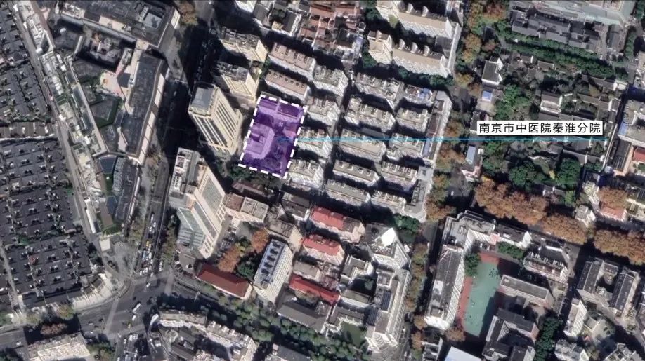 适老化设计正成为当前城市更新的一个重点和热点领域。作品设计基地为南京市中医院秦淮分院,该地块老旧小区密集,区域内老龄人口增加,缺乏完善的在地养老设施,缺乏景观绿地和公共活动空间。
