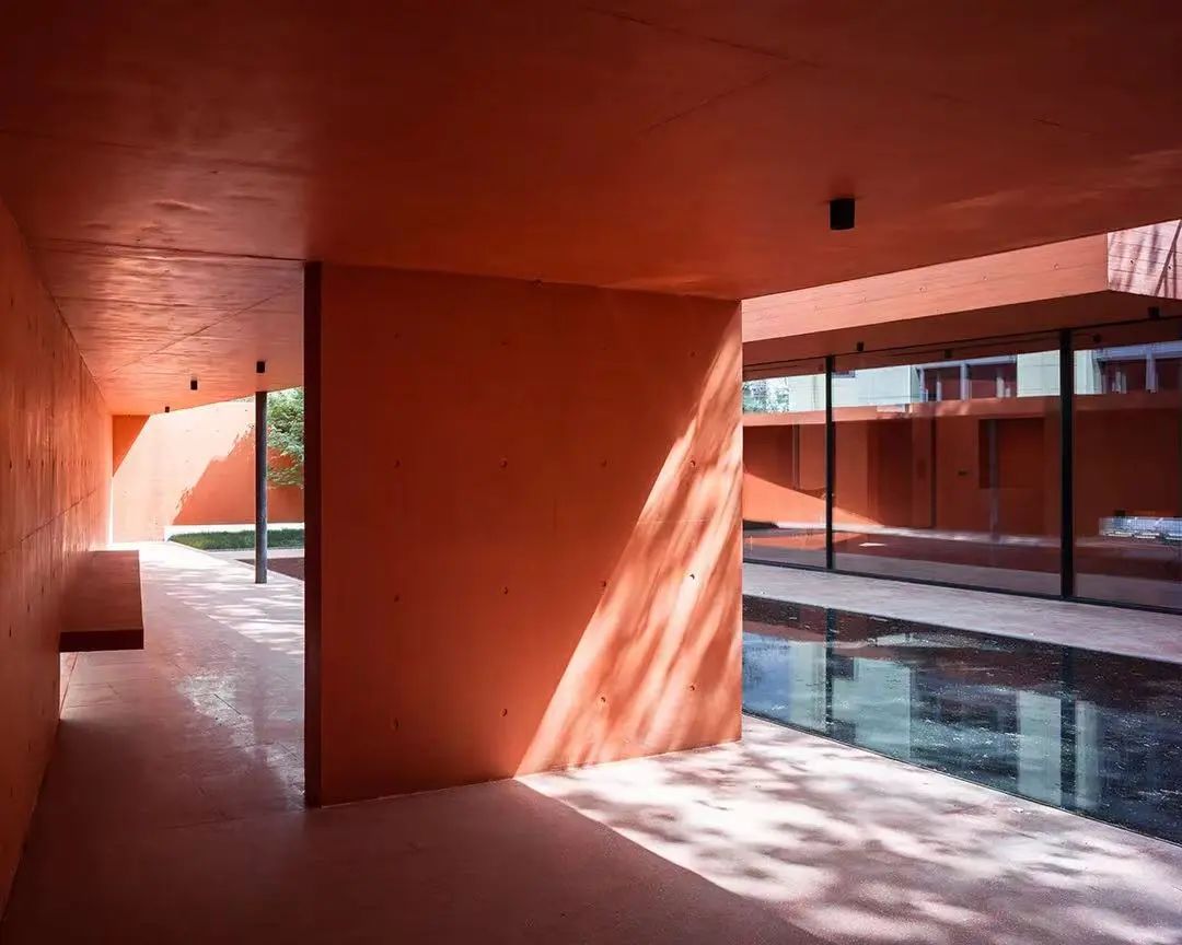 红盒子作为园区的活动中心,承担宣传、展览、酒会等功能。它由红色清水混凝土浇筑而成,红色来源于混凝土中掺入的氧化铁,与红山之名相呼应。红盒子与园区内其他红砖建筑求同存异,细腻肌理展现了新建筑与场地的历史元素相呼应的诚恳姿态。
