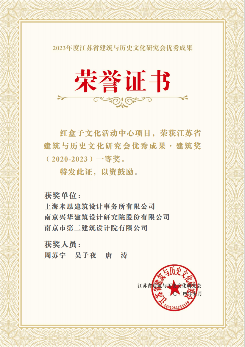 红盒子文化活动中心项目获江苏省建筑与历史文化研究会优秀成果·建筑奖(2020-2023)一等奖