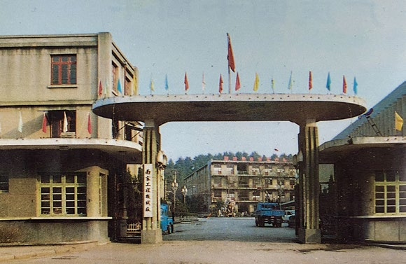 厂区老照片(左:厂区入口,右:入口处办公楼及远处林荫道)