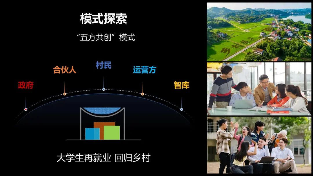 我们认为“五方共创”模式更具活力,更具推广性。这一模式不仅适用于本项目,也可以点带面推广到更广泛乡村地区。通过挖掘每个村庄的独特文化资源,提升社会对乡村价值的认同,吸引多样化群体广泛参与,实现青年的回流、人才的集聚、产业的升级,共同激发乡村内生活力。