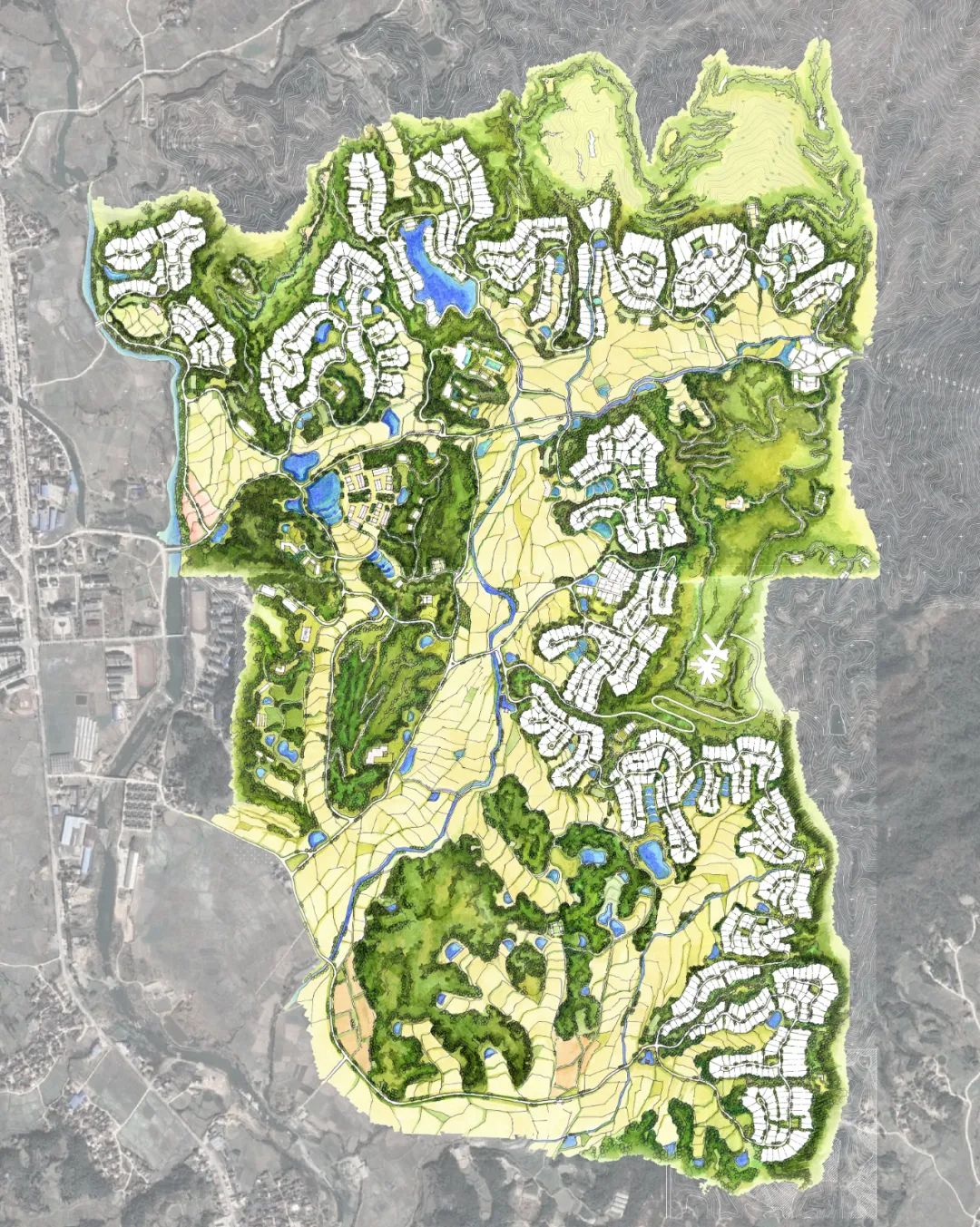 项目所在区域散落着众多传统风貌建筑,具有深厚的文化底蕴。根据上位规划,片区开展文旅康养资源的整体开发,项目总用地约7平方公里,规划建设用地约1300亩。