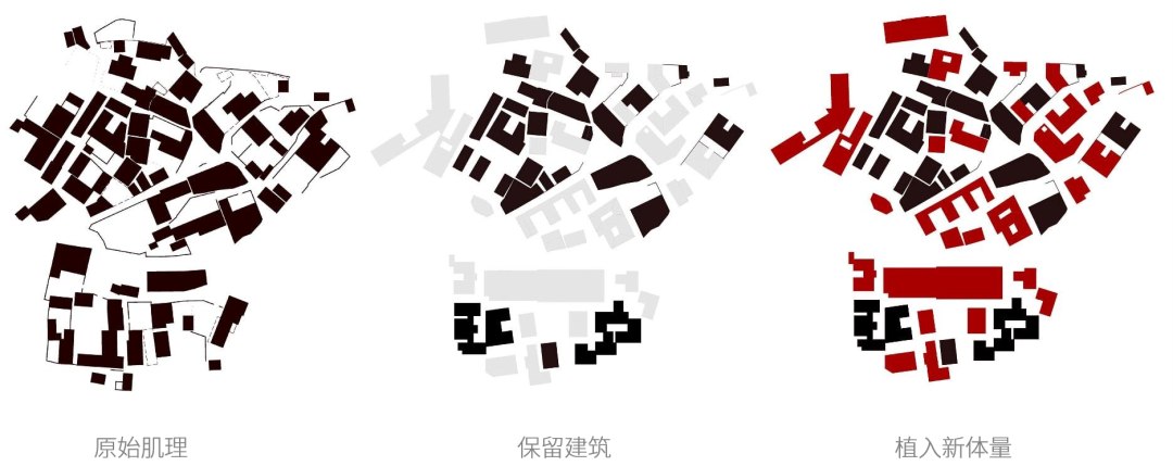 设计团队以保护山体生态环境、维系村落原有肌理为基本原则。通过实地调研和逐栋分析,精准选取其中具有保留价值的建筑进行保护和修缮;对没有保留价值的建筑,则进行了逐栋解析和定制化设计,以适宜的建筑体量,置入环境之中,重新织补村落形态。