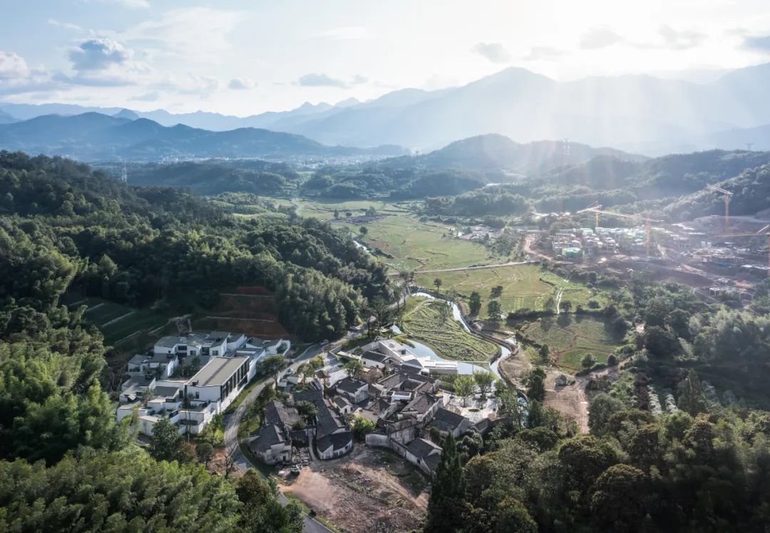 项目位于安徽省池州市青阳县九华山南麓的礼貌山,地理位置优越,生态环境优美,旅游资源丰富。项目为整个片区的启动区,由酒店和会议中心两组建筑组成。项目的开发打造了与山色共起伏、与自然共生的文旅康养一体化永续田园社区,实现了新建筑、村落和自然环境完美融合。