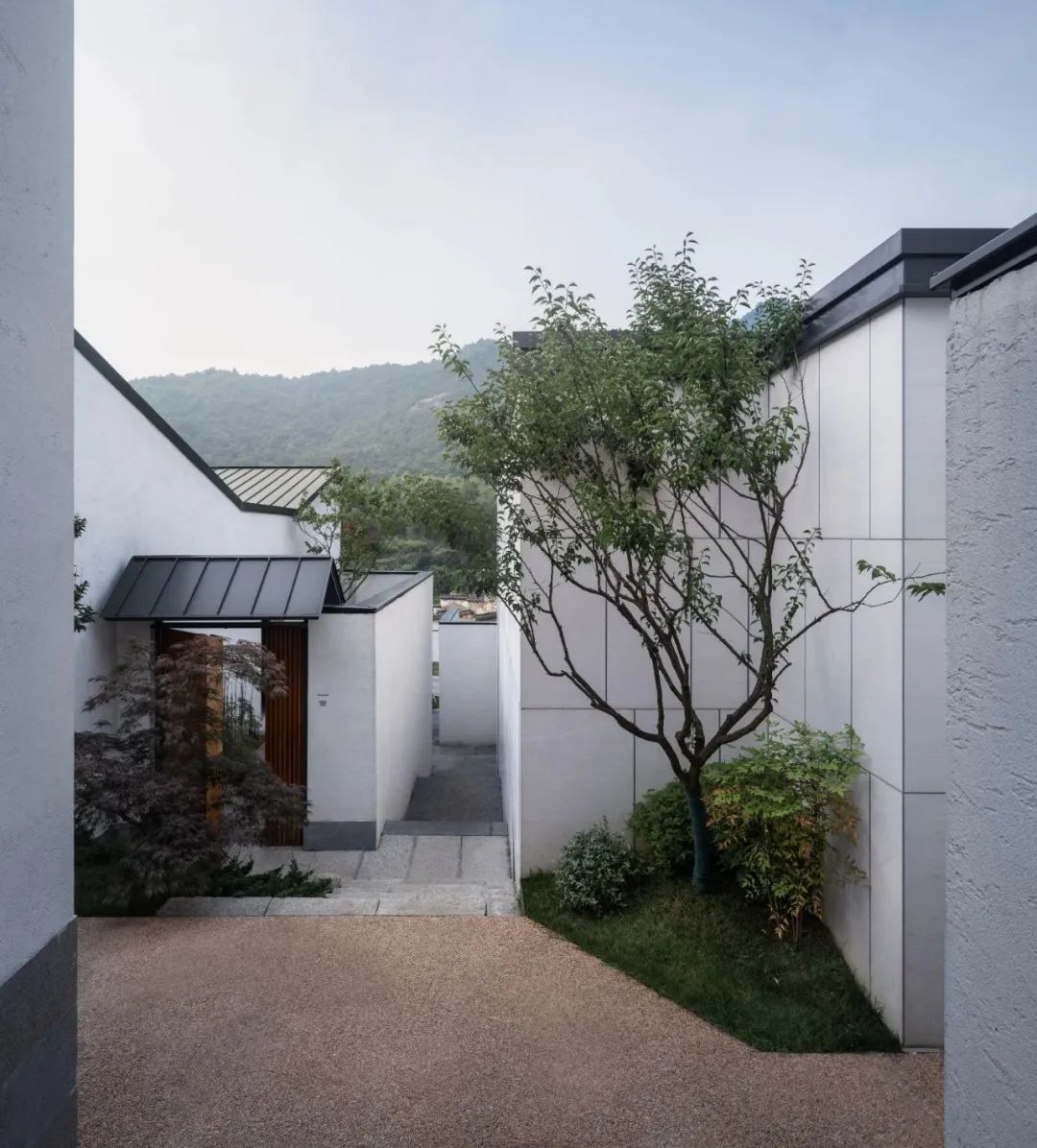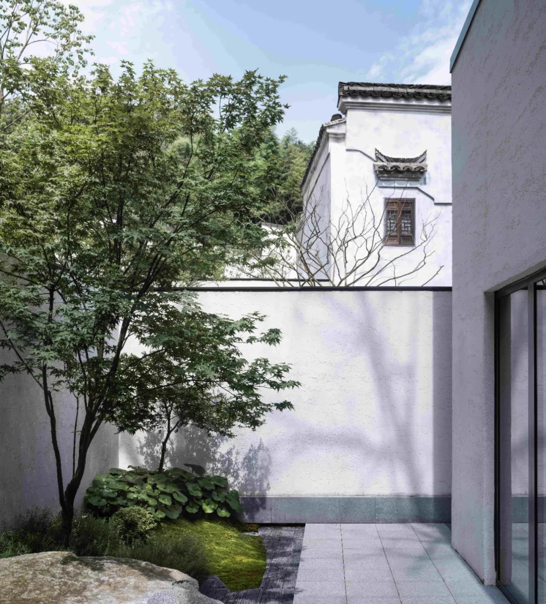 组织院落的序列关系,呼应高墙深宅的徽派建筑意象,让建筑内外动静有序、曲直有因、来去有道、急慢有理。运用借景手法,做到墙内有院景,院外有山景,让多层次的景观相互衬托、相映成趣、意不浅露、境不穷达。