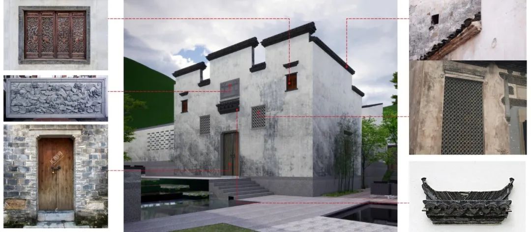 设计团队将酒店功能“化整为零”,场地中心的保留建筑与门前的庭院形成了酒店组团的中心,呼应了徽派村落的传统形制。
