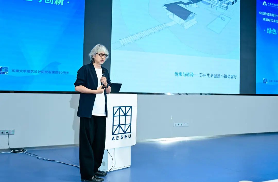 江苏省设计大师、苏州九城都市建筑设计有限公司总建筑师张应鹏作题为《新型钢木结构与新型传统空间》的报告,报告结合具体案例讨论作为新型结构体系的钢木结构在塑造新型传统空间中的应用与实践。