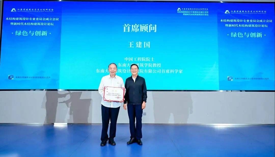 专委会成立会议由省建筑与历史文化研究会常务副会长章小刚主持,木结构筹建单位东南大学建筑设计研究院有限公司分院副院长韩重庆作专委会筹备情况报告。刘大威会长与王建国院士共同为专委会揭牌。